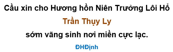 Đây là việc phải làm để đưa tiễn một Huynh Trưởng, Niên Trưởng, Chiến Hữu về nơi an nghỉ cuối cùng. Ước mong Liên Hội Cựu Chiến Sĩ, Hội Võ Bị Quốc Gia VN, Hội Gia Đình Mũ Đỏ cùng góp tay để tổ chức Lễ Cầu Siêu cho Linh Hồn Trần Thụy Ly được thanh thản ra đi về nơi an nghỉ cuối cùng.