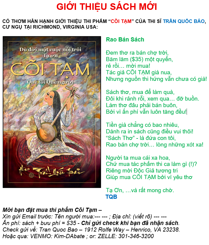 quocbao_30@yahoo.comSÁCH CÓ THỂ MUA TỪ AMAZON QUA LINK SAU ĐÂY: “CÕI TẠM – BAO TRAN – AMAZON“