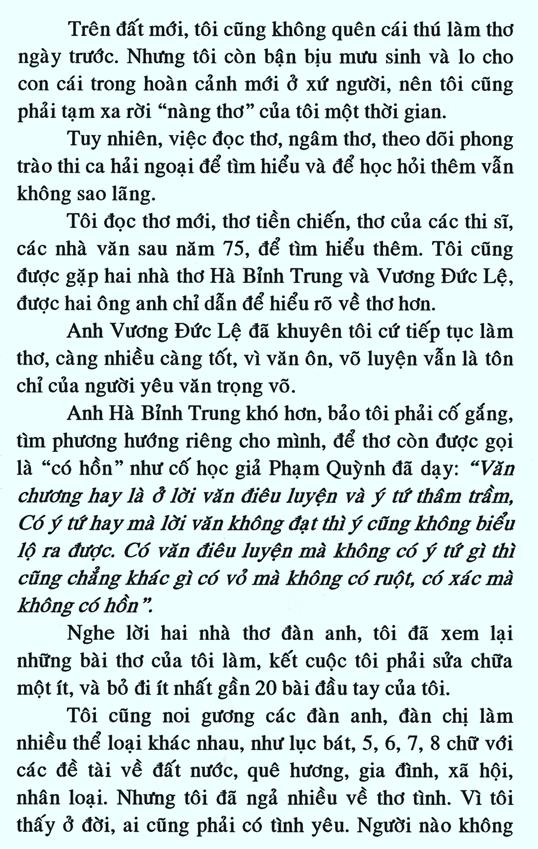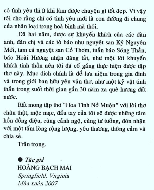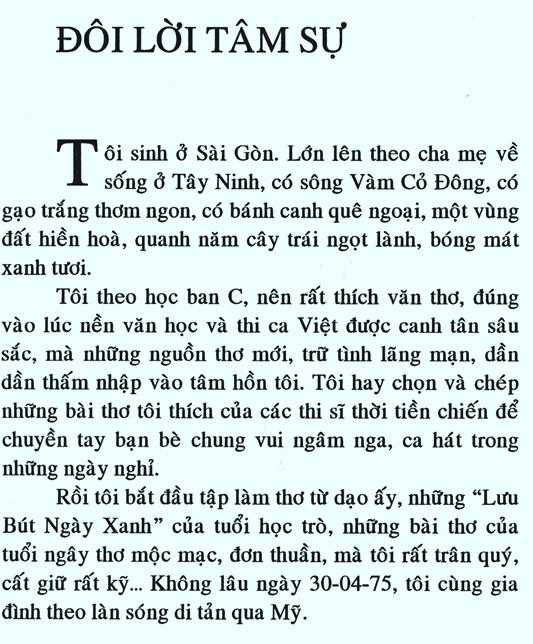 (Nguyễn Thị Ngọc Dung viết Tiểu sử ở trên dựa theo “Đôi Lời Tâm Sự” trong tập thơ “Hoa Tình Nở Muộn”)