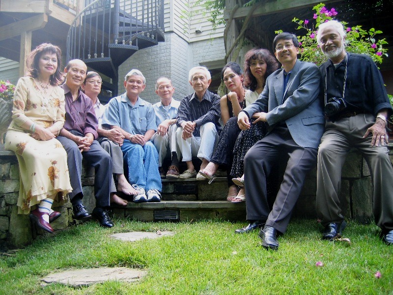 HỌP MẶT TẠI NHÀ THI SĨ HÀ BỈNH TRUNG – THÁNG 6, 2005 – Từ trái: Kiều Nga, Nguyễn Văn Đặng, Phạm Thành Châu, Hoàng Trùng Dương, Phạm Văn Tuấn, Hà Bỉnh Trung, Bạch Mai, Tâm Hảo, Phan Anh Dũng, xxx