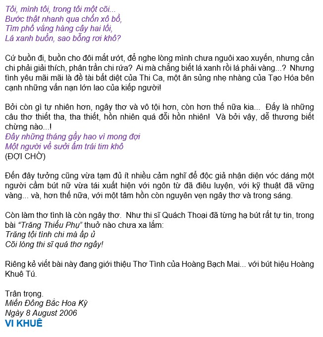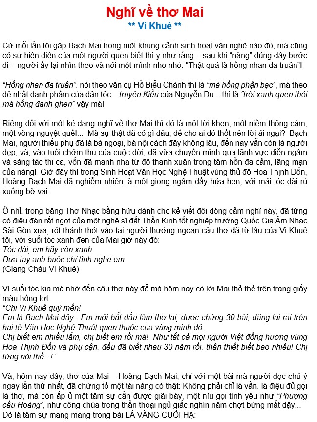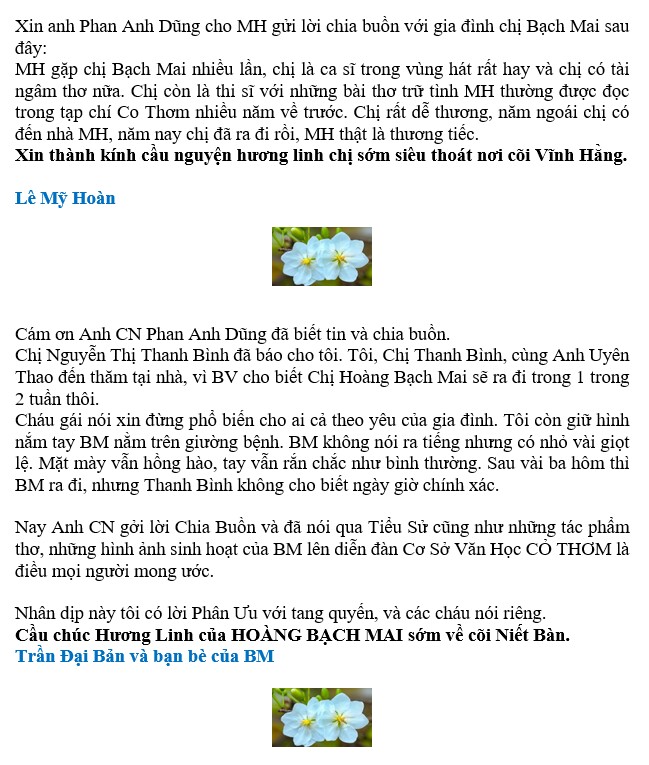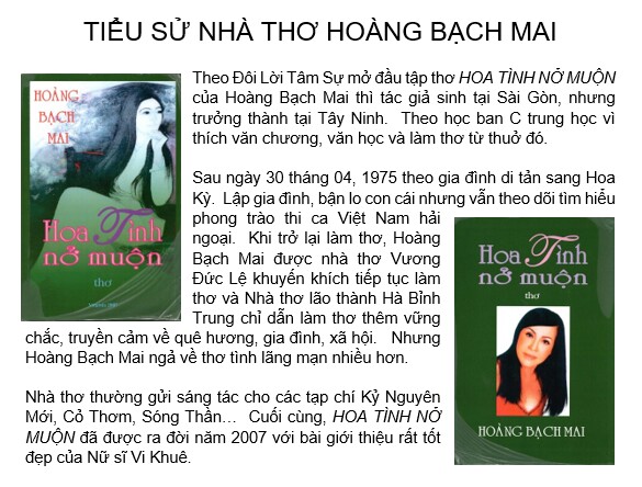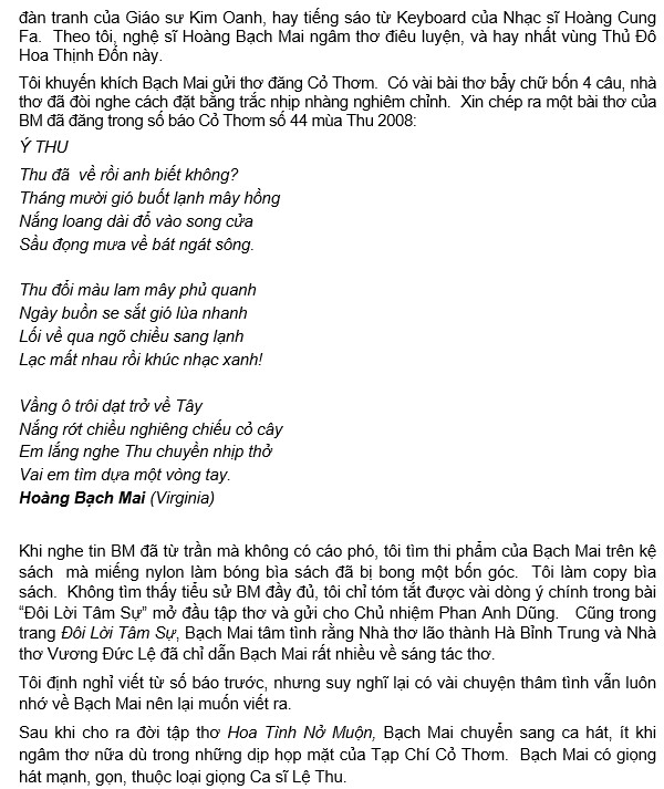 MỘT SỐ BÀI THƠ CỦA HOÀNG BẠCH MAI ĐĂNG TRONG CÁC TẠP CHÍ CỎ THƠM